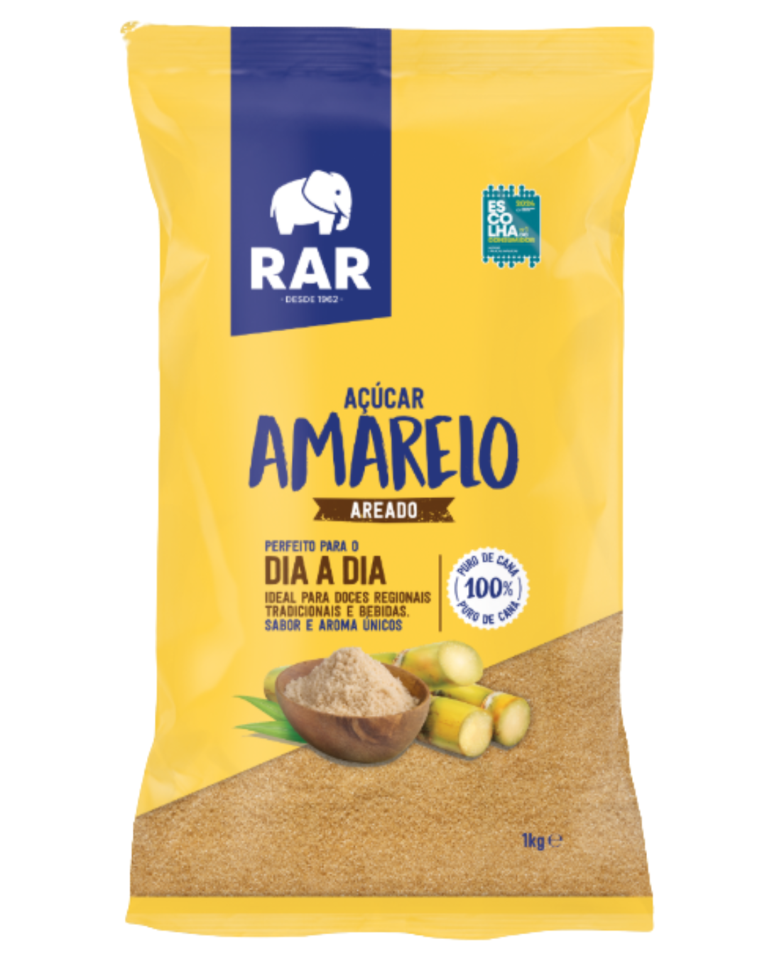 RAR – Refinarias de Açúcar Reunidas, Açúcar Areado Amarelo, pacote de 1 kg, saco de 25kg, B2B e B2C, Vegan
