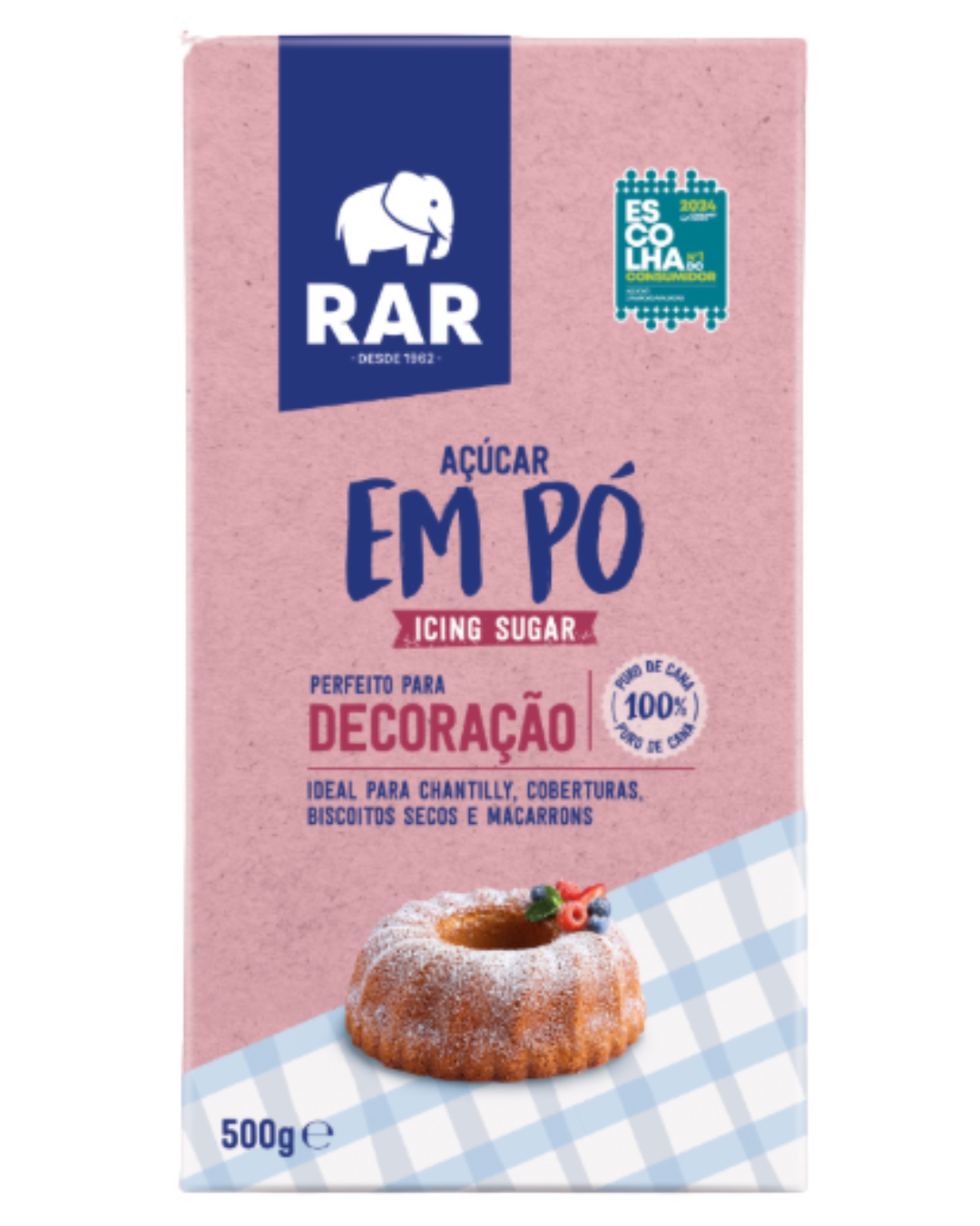 RAR – Refinarias de Açúcar Reunidas, Açúcar Branco em Pó, caixa de 250/500 g, saco de 10 kg, B2B e B2C, Vegan