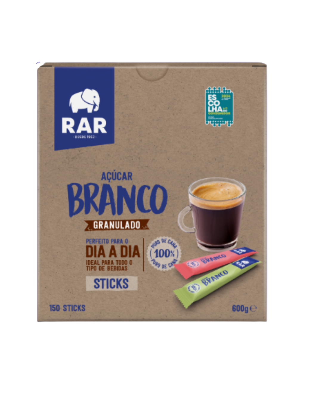 RAR – Refinarias de Açúcar Reunidas, Açúcar Branco granulado, sticks em caixa, 200, 600g e 1kg, B2B e B2C, Vegan